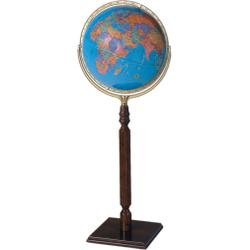 Simply elegant, with the clean lines of a cherry finished post and wood base. Topped by a 16" raised relief blue oceans globe in champagne toned full meridian, for a distinctive addition to any library. Unit stands 38" tall. Thousands of place names identified. Crisp contrasting colors used for ease in identifying locations.